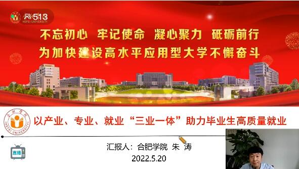 为多措并举促进2022届高校毕业生更加充分更高质量就业,5月20日上午,浙江省、江苏省、安徽省和上海市高校组织了百日冲刺·精准就业——华东3省1市线上论坛。本次论坛邀请了浙江大学、东南大学、合肥学院、北森生涯研究院做分享交流。我校党委委员、党委学生工作部部长朱涛参加论坛,并对我校就业工作经验作交流分享。