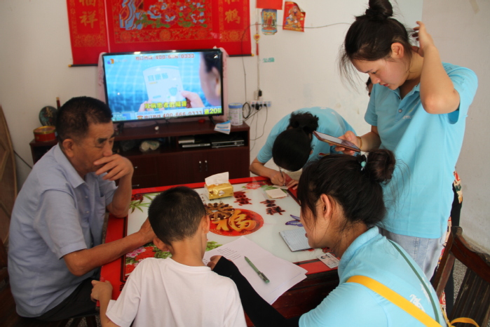 由于居住地离活动开展地有1个小时左右的车程,为了节省时间,队员们只能早出晚归,放弃了回驻地午休,尽快完成每天的任务。队员们就这样顶着散发“温度”的艳阳,任由汗水浸湿了队服,挨家挨户地帮助孤寡老人激活电子医保凭证,并且宣传相关知识、发放宣传单等。