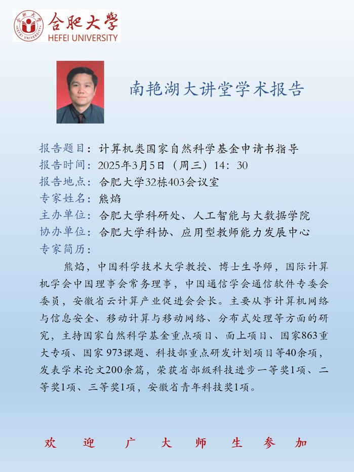 【南艳湖大讲堂】计算机类国家自然科学基金申请书指导