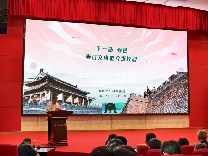 7月1日下午,“下一站·寿县”文旅推介进校园活动在我校图书馆报告厅A厅举行。党委委员、副校长白义香,寿县人民政府副县长王素苗,寿县县委宣传部、文化和旅游局等相关部门领导出席。活动吸引了数百名师生参与。