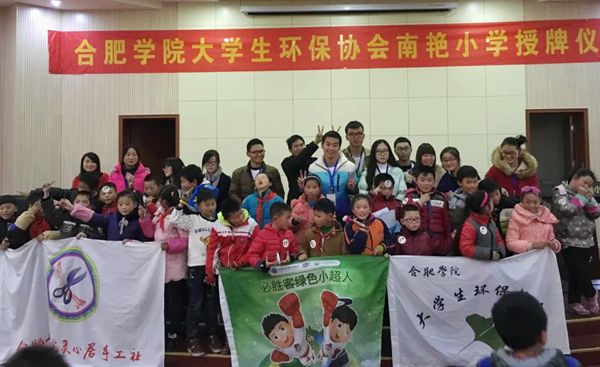 合肥学院与南艳小学共建环保教育基地,这也标志着我校大学生环保协会在原有志愿者活动基础上,此后将承担起南艳小学更多的环保课程教学、环保理念宣传、环保实践活动指导等工作,把环保的理念通过志愿服务传递给更多的人,帮助小学生从小树立正确对待环境的意识,塑造和谐文明的社会主义新家园。