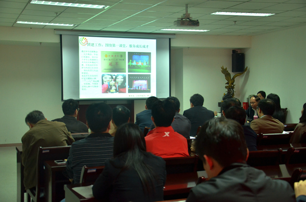 会上,各教学单位党政主要责任人以PPT汇报的形式,从教学、科研、党建、学生及团建工作五个方面对照本年度目标任务完成情况、年度工作重要举措和创新性成果进行了汇报交流。