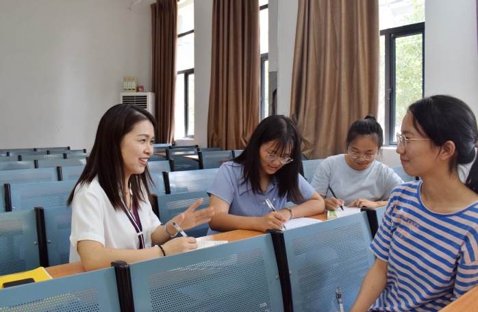 吕琴琴(左一)在和学生交流