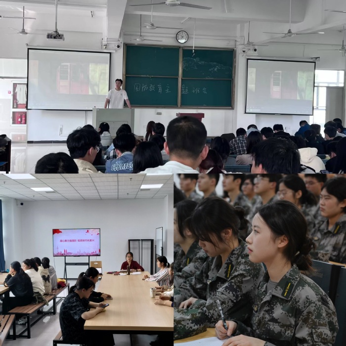 为增强学生的国防意识,各二级学院组织召开国防教育主题班会,深入阐释习近平强军思想,引导青年学子强化国防观念,提升国家安全和社会责任意识。各学院还组织学生观看征兵宣传片,宣传大学生应征入伍政策及入伍学生就业案例。