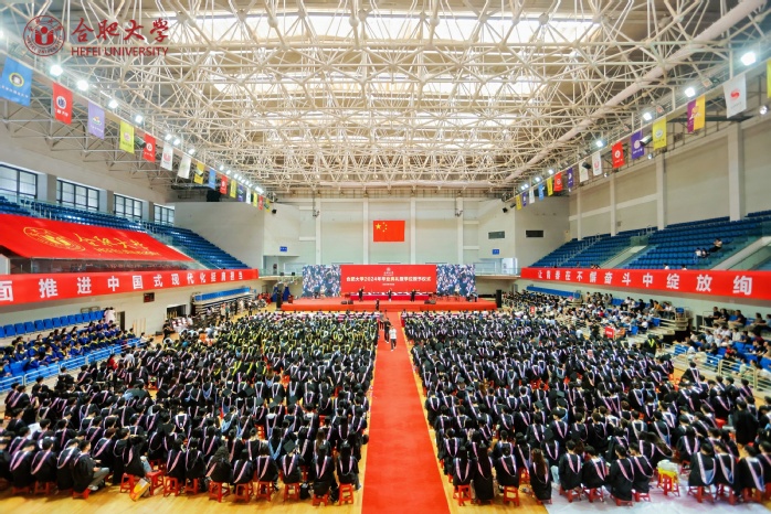 副校长、校学位评定委员会副主席陈秀宣读学位授予文件。校党委书记王其东、陈秀分别为本科毕业生代表、研究生毕业生代表、优秀留学生毕业生代表授学位、拨流苏。