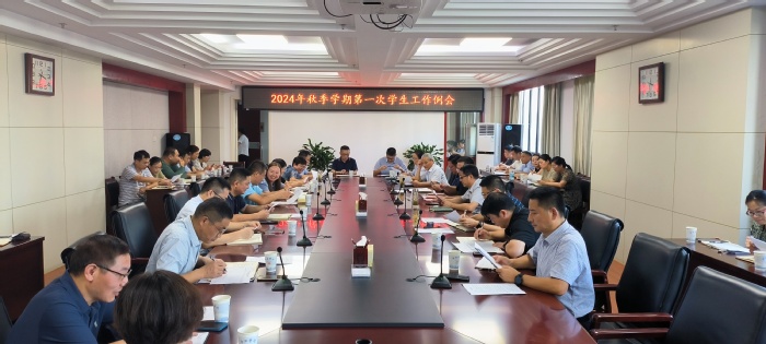 会上,党委委员、党委宣传统战部部长贾峰部署了近期宣传思想文化工作和开学季重点工作,对学习宣传贯彻党的二十届三中全会精神作出进一步安排。质评处处长储忠通报了审核评估工作中学生支持服务环节的工作进度,部署了下阶段重点工作。保卫处处长李泽远传达了《关于教育系统重大事故隐患判定指南》,布置了本学期学生安全管理重点工作。研究生处处长葛春梅布置了研究生评奖评优、就业、新生报到等方面的重点工作。教务处副处长王仁宝汇报了期初教学检查、补考缓考、学业预警等方面的工作安排。校团委书记张应杰通报了当前就业、征兵工作进度,布置了期初辅导员培训和团学工作。学生处副处长陶龙泽讲解了新生报到方案,布置了老生返校、综合素质测评、资助和心理安全相关工作。丁增云对开学前的宿舍管理和返校进度跟进、2025届学生就业等重点工作进行了布置。
